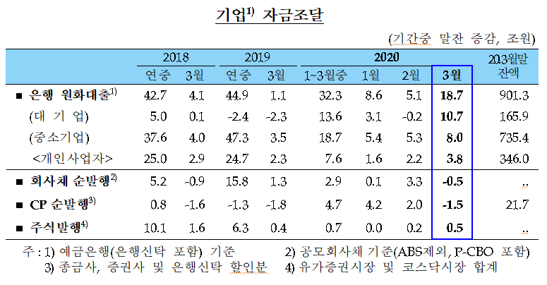 o 중소기업대출(+5.3조원 → +8.0조원)도 코로나19 확산에 따른 자금수요 증대 및 정부·은행의 지원 등으로 증가규모가 상당폭 확대