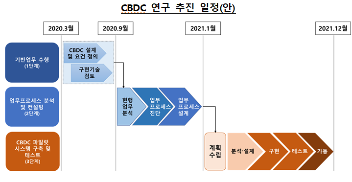ㅇCBDC 설계 및 요건 정의 : 5개월(‘20.3월~7월)